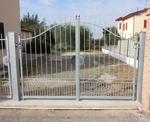 I nostri cancelli ad anta battente o scorrevoli manuali o automatici sono proposti in una vasta gamma di modelli